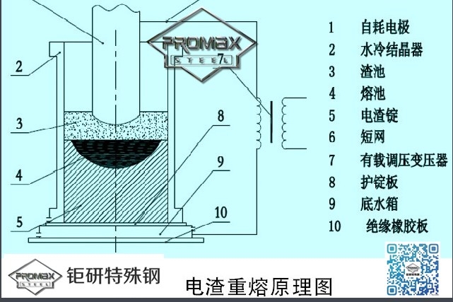 同時(shí),液態(tài)金屬在渣池覆蓋下,基本上避免了再氧化。因?yàn)槭窃阢~制水冷結(jié)晶器內(nèi)熔化、精煉、凝固的,這就杜絕了耐火材料對(duì)鋼的污染。鋼錠凝固前,在它的上端有金屬熔池和渣池,起保溫和補(bǔ)縮作用,保證鋼錠的致密性。上升的渣池在結(jié)晶器內(nèi)壁上形成一層薄渣殼,不僅使鋼錠表面光潔,還起絕緣和隔熱作用,使更多的熱量向下部傳導(dǎo),有利于鋼錠自下而上的定向結(jié)晶。